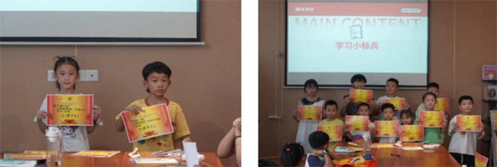 在隨后展開的趣味表彰中,團隊依據課程表現頒發定制獎項:"最佳小朋友"、"金牌學習王"、"學習小標兵"、"最具潛力獎"。通過頒發手繪獎狀與主題勛章,激勵孩子們保持探索熱情、樹立成長自信、強化責任意識、永葆進取精神。