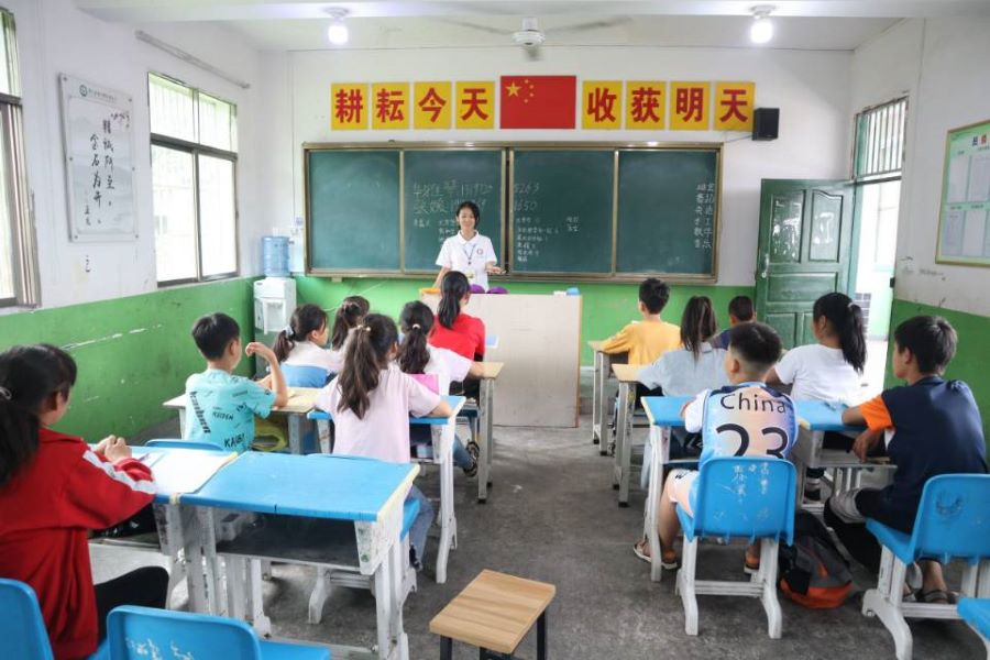 10點10分,隨著上課鈴聲的響起,學生們早已在教室里面端端正正做好。每一位支教老師帶著對孩子們的關懷,帶著對孩子們的負責,打開了教室的門,更打開了孩子的心靈。
