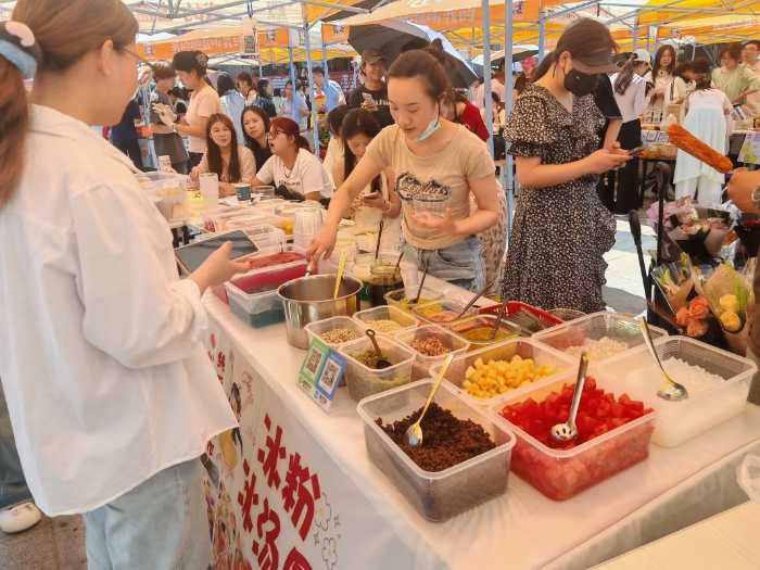 活動現場熱鬧非凡,多元業態精彩紛呈。現烤肉串的滋滋香氣、手工文創的精巧設計、特調飲品的創意混搭,各類特色攤位依次排開,每一件商品都凝聚著學子們的奇思妙想與創業熱情。同學們化身"創業攤主",從產品選型到攤位布置,從營銷推廣到客戶溝通,全程自主策劃、協同作戰,用鮮活的創意和務實的行動,讓校園集市充滿煙火氣與創造力。