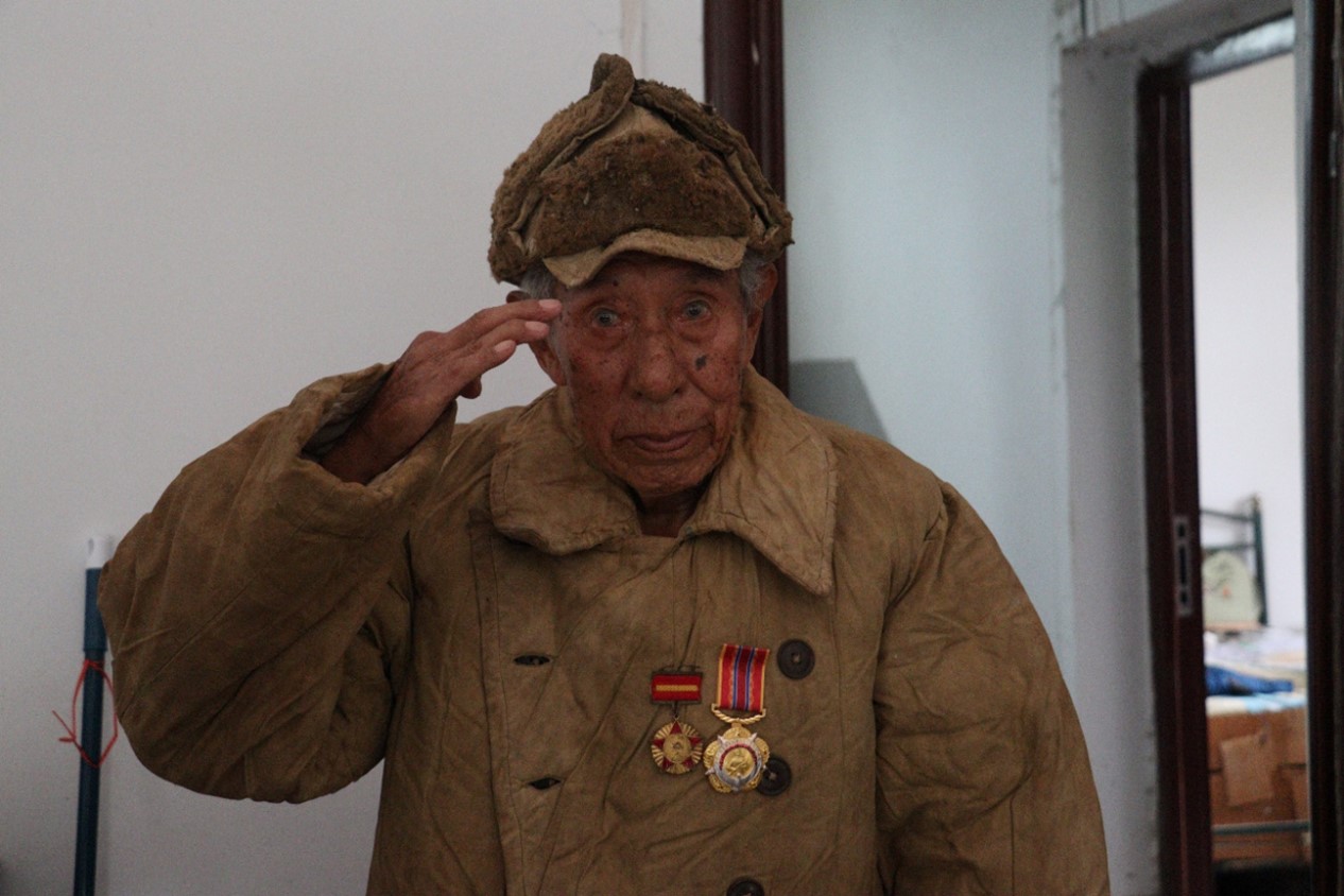 田園黨課結束后,實踐團成員前往了紅軍寨,重走紅軍路,在向山頂蜿蜒陡峭的山路中,實踐團成員邁著堅定的腳步追隨前輩的印跡,紙上得來終覺淺,傳承紅軍精得必須切身躬行。前行的腳步將實踐團成員帶到了抗美援朝老兵李明輝的家中。得知實踐團成員前來拜訪慰問,李明輝拿出了自己的勛章以及當時戰場上所保留下來的軍大衣,李明輝再一次穿上大衣,顫抖的雙手在敬禮那一刻似乎堅定的如磐石一樣,李明輝向實踐團成員們講述當年發生的故事,成員們在淚水中了解歷史,緬懷歷史,悼念英雄,將紅色精神深深根植在心中,堅定理想信念,向著祖國富強民族復興的道路正確前行。
