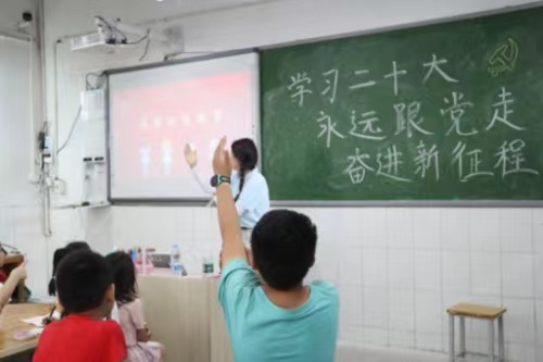 青春向黨,攜手“童”行。為響應黨的二十大號召,加強青少年思想政治教育引領,加大青少年愛黨、愛國理想信念教育,鞏固和擴大黨的青少年群眾基礎,近日,重慶外語外事學院“奮楫揚帆·鑄夢豐都”實踐團來到重慶市豐都縣龍孔鎮中心小學校,為當地留守兒童開展形式多樣的黨團課理論知識宣講活動。重溫黨的光輝歷程,謳歌黨的豐功偉績,教育引導當地青少年堅定理想信念,茁壯成長。