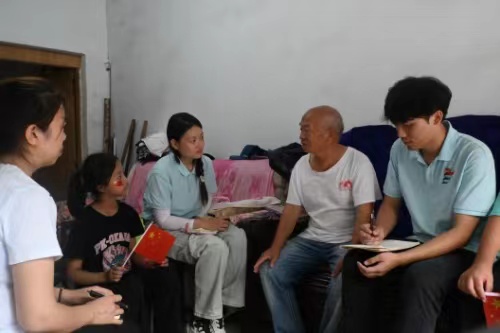 走訪黨員,堅定理想信念實踐團成員采用課內外相結合的形式開展黨團史理論學習,豐富課程內容,課堂之外,帶領孩子們來到當地老黨員秦大林的家中,聆聽秦大林同志講述自己的入黨經歷與入黨初心,來到興龍社區服務中心走訪興龍社區書記秦光周。秦書記向實踐團成員分享自己離鄉,毅然決然投入地方脫貧攻堅戰的經歷,“當時我想的嘛,就是要跟緊總指揮,把這個地方發展起來,讓這里的居民過上好日子,堅持為群眾服務。”走進身邊黨員的生活,了解老黨員的經歷,積極引導孩子們繼承和發揚老黨員身上的優秀品質,堅定理想信念,為創造美好未來樹立正確的價值導向。