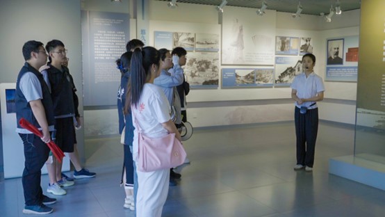 圖為長安大學赴山東淄博“探數字賦能,助鄉村振興”暑期社會實踐隊傾聽講解員的講解