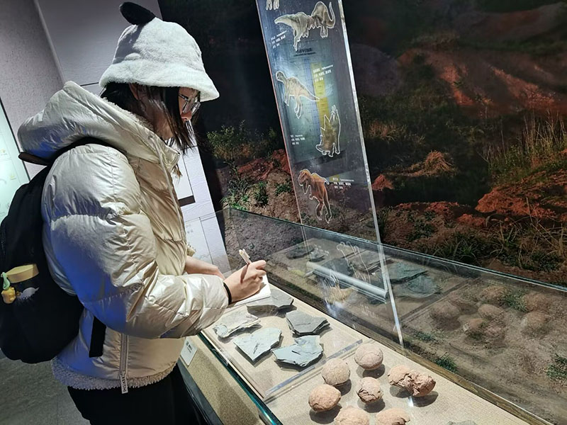 圖為實踐團成員觀看展柜內(nèi)的產(chǎn)品。