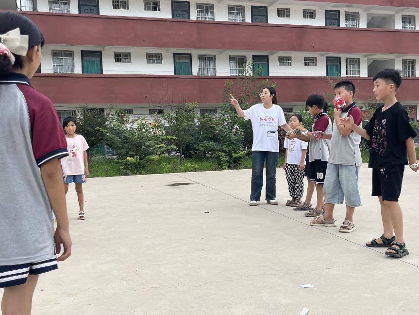 圖片為實踐隊隊員在體育課上帶領學生們進行丟沙包游戲。中國青年網通訊員 張杰 攝
