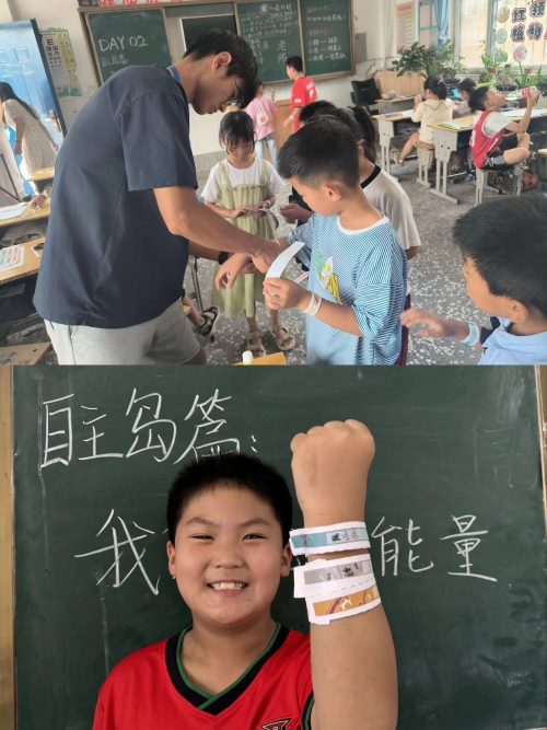 圖片為實踐隊隊員帶領學生們進行制作“我的優勢手環”。中國青年網通訊員 張杰 攝