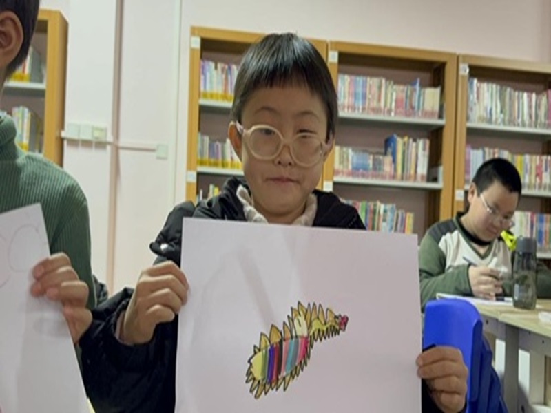 隨后,活動進入了創作環節。在這50分鐘里,孩子們充分發揮自己的想象力和創造力,以“我心中的大田板燈龍”為主題,在畫紙上自由創作。孩子們心中的板燈龍有可愛的、有威猛的、有美麗的……各式各樣的板燈龍 彰顯了其可創造性。團隊人員在教室里巡回指導,耐心地為孩子們解決繪畫過程中遇到的問題,鼓勵他們大膽發揮自己對大田板燈龍的想象。教室里洋溢著濃厚的藝術氛圍,孩子們用畫筆詮釋著對大田板燈龍的理解和喜愛以及對傳統文化的敬意。