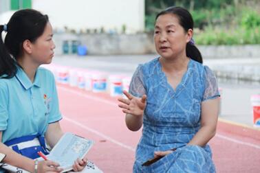 謝老師和志愿者們圍坐在操場上,進行了長達一小時的訪談。謝老師強調通過語言、獎懲激勵學生發言,有助于改善課堂上學生發言不積極情況;對于不同的性格的孩子,應當采取不同的獎懲措施,因材施教提出分層布置作業。“才者,德之資也;德者,才之帥也。”在談到對后進學的教學時,謝老師認為首先教師真正愛學生,學生才能信任老師,她強調育人先育德,注重對學生德行的培養,且要多層面、多角度尋找學生閃光點,進行表揚與鼓勵。