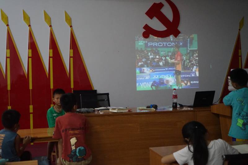 由于天氣較熱,不便開展課外活動,向陽花志愿服務隊將課堂地點設在史家渡村村委會二樓“希望家園”教室。本次課堂采用PPT圖文講解與主講人示范相結合的方式進行。課程伊始,本次羽毛球理論知識課堂主講人、向陽花志愿服務隊志愿者、武昌理工學院繼續教育學院羽毛球隊唐守珍向大家展示了所參加羽毛球比賽的活動照片,并分享了自己的參賽經歷。同學們全神貫注,對主講人的參賽經歷十分向往。隨后,主講人向學生講起了羽毛球及球拍的不同種類,并通過視頻與圖片結合的方式分別介紹了不同球拍的特點。在學生的請求下,主講人還向學生分享了挑選球拍時的注意事項以及自己的購拍經驗。課程來到羽毛球運動技巧環節,主講人向大家講解了羽毛球的引拍、擊發、劈吊等技巧,由于場地限制,學生不便進行活動,主講人以自身示范的方式向同學們講解動作要領。最后,主講人向同學們播放了羽毛球世錦賽視頻,在學生的喝彩聲與鼓掌聲中,課堂結束。