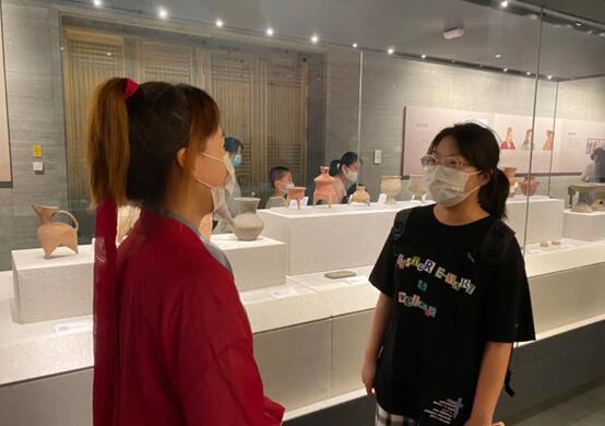 圖為實踐隊員在孔子文化博物館采訪游客。 中國青年網通訊員 馬欣臻 攝