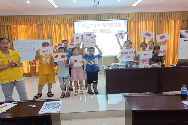 今年是召開黨的二十大,是第二個一百年開局之年。2022年8月30日下午2時30分,武昌理工學院第十六屆“大手牽小手”云夢國情觀察團陳趙社區(qū)志愿小隊與陳趙社區(qū)黃香社工聯(lián)合開展“童心向黨,喜迎二十大”主題活動。