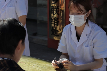 圖為團隊成員為居民進行血壓測量 通訊員 劉曉曉 供圖