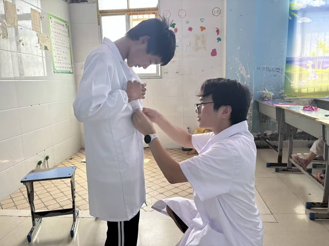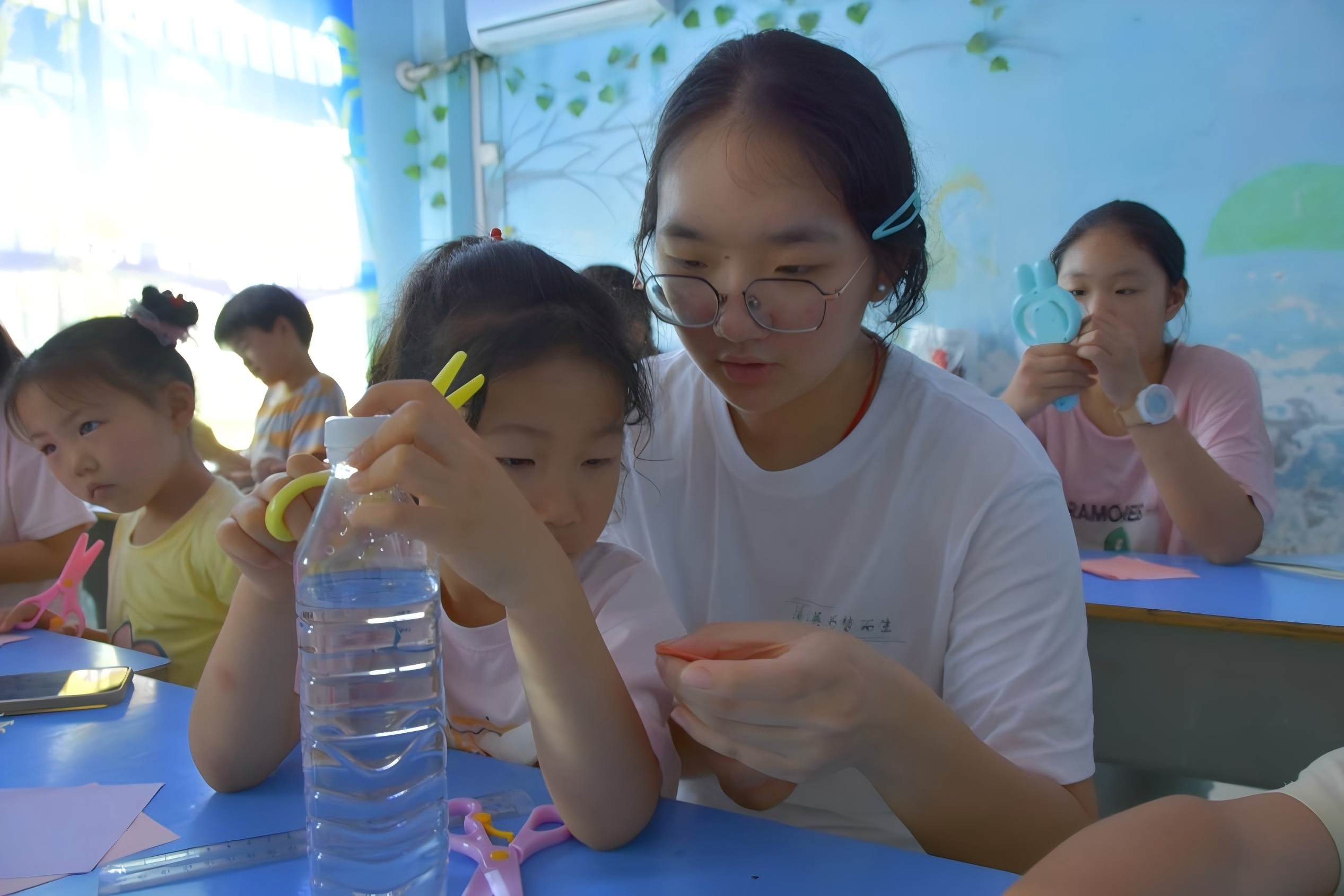 7月6日的課堂呈現出更多元化的精彩內容,抵制霸凌教育、棋類競技與職業體驗成為當日活動的顯著亮點。志愿者們創新地將情感教育融入手工實踐,帶領學生們用紙片創作窗花。這一過程不僅鍛煉了動手能力,更巧妙地承載了傳遞友善、尊重與反對霸凌的核心信息,讓學生在藝術創作中自然領悟和諧相處的道理。與此同時,象棋對弈區化身為鍛煉邏輯思維的“智慧戰場”。有效提升了專注力與策略規劃能力。教室的另一角變身為生動的“科學工坊”。醫生職業體驗課通過真實的聽診器實驗展開,孩子們好奇地互相傾聽心跳聲,感受生命的韻律與胸腔的共鳴。這直觀的互動體驗瞬間拉近了他們與醫生職業的距離,激發了探索生命科學的興趣。托管中心的教室空間被高效利用,靈活轉化為激發創造力的“科學工坊”與考驗智慧的“思維戰場”。留守兒童們在這些精心設計的動手實踐和腦力激蕩環節中,熱情投入,不僅收獲了知識和技能,更在歡樂的氛圍中不斷突破自我認知的邊界,體驗了學習的樂趣與成長的喜悅。