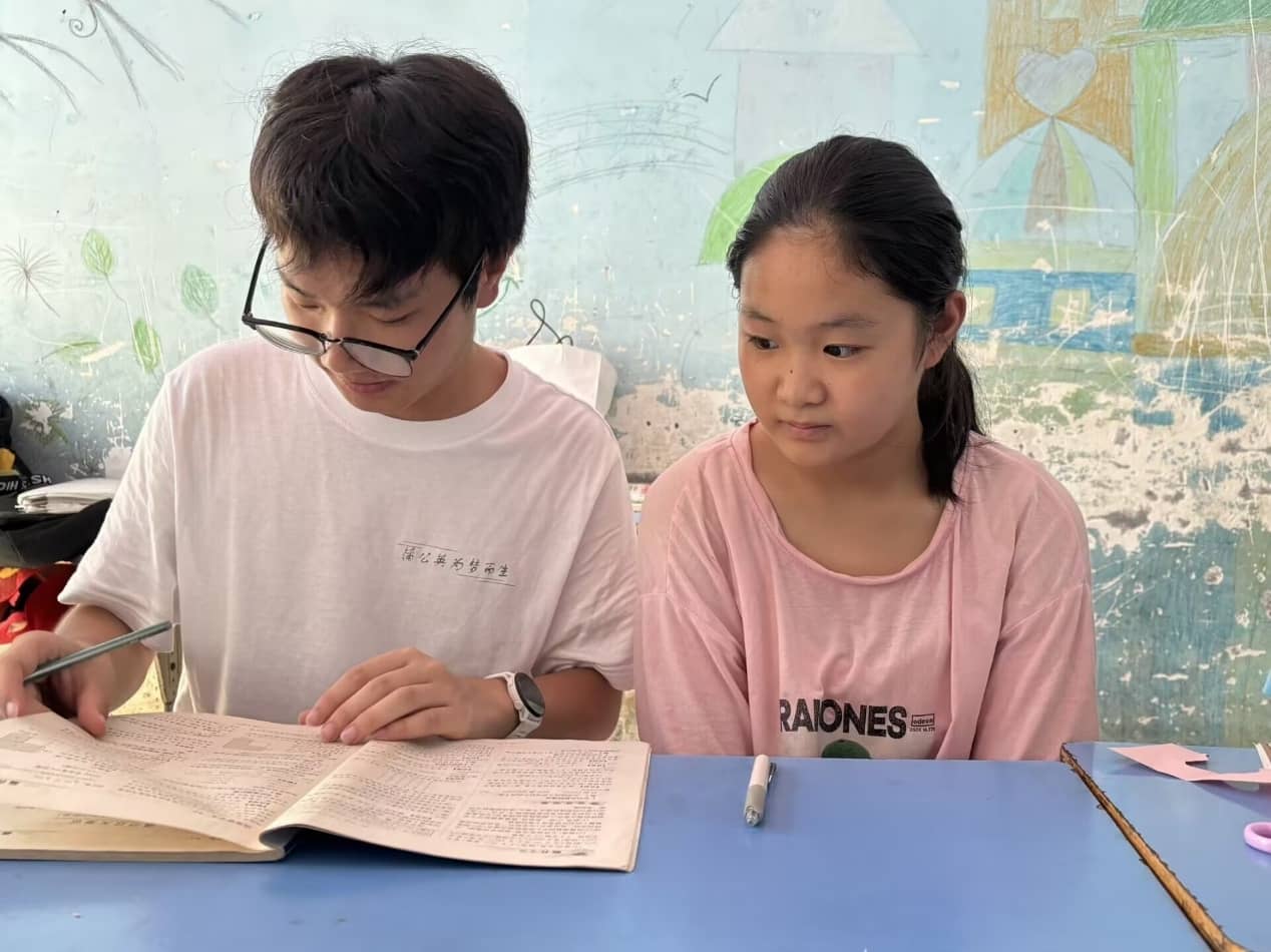 圖為隊員給7年級小朋友進行學業上的輔導。 卜祥吉 供圖