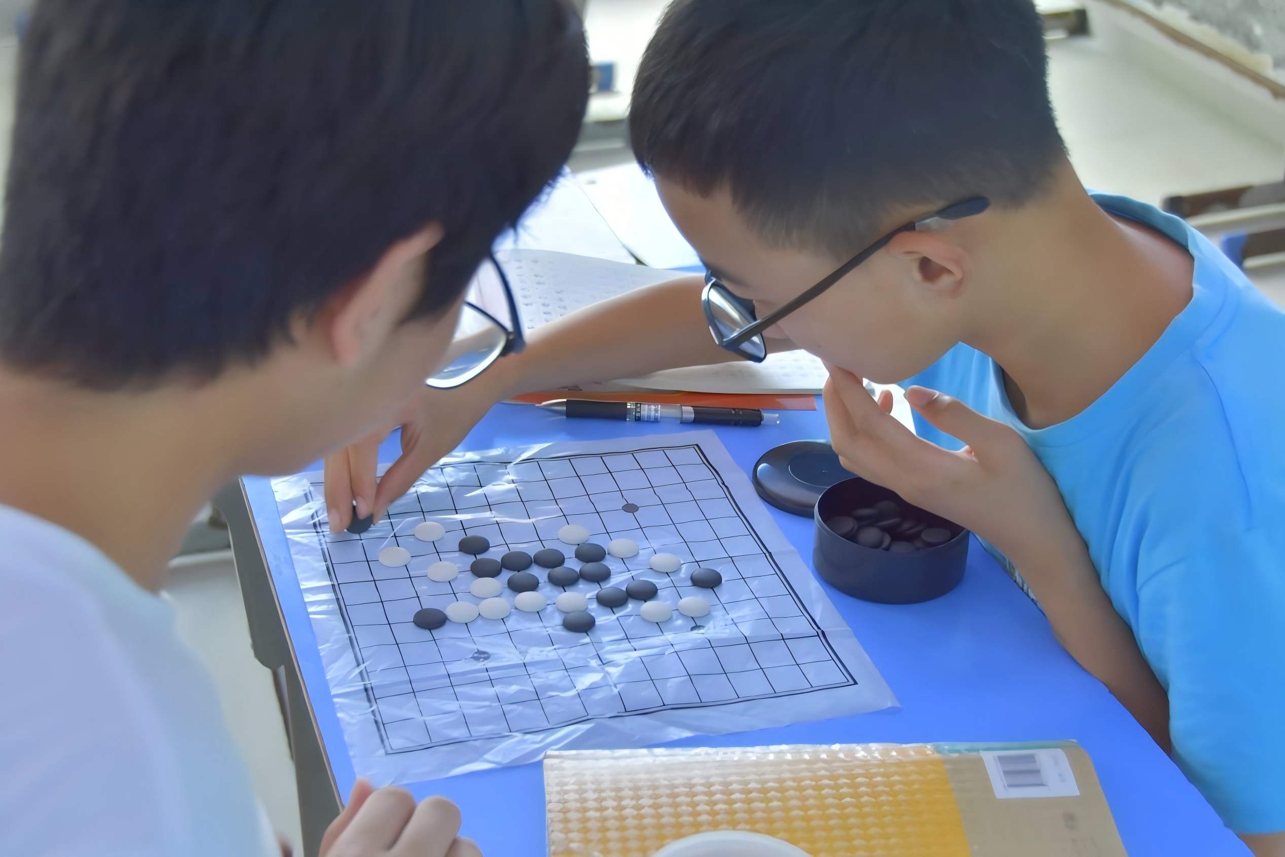 圖為隊員與小朋友進行五子棋博弈。卜祥吉 供圖