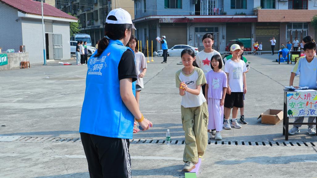 (通訊員 尹妤伊 邵一樂 徐嘉俐)2025年7月9日,湖南師范大學(xué)體育學(xué)院“領(lǐng)夢(mèng)者·弘帆”實(shí)踐團(tuán)在月溪鎮(zhèn)鴻程社區(qū)易地扶貧安置點(diǎn)廣場(chǎng),開展了一場(chǎng)與國(guó)家級(jí)課題《CEPF青少年應(yīng)急避險(xiǎn)體適能智慧課程》緊密結(jié)合的生命安全教育活動(dòng)。出席本次活動(dòng)的嘉賓有駐村第一書記潘文軍、月溪鎮(zhèn)鴻程社區(qū)支部書記劉永定、洞口縣發(fā)展和改革局駐村隊(duì)員胡鵬飛、洞口縣發(fā)展和改革局駐村隊(duì)員鄧偉兵、月溪鎮(zhèn)中心小學(xué)校長(zhǎng)王國(guó)槐以及湖南師范大學(xué)體育學(xué)院“領(lǐng)夢(mèng)者·弘帆”實(shí)踐團(tuán)指導(dǎo)老師伍艾。活動(dòng)聚焦防溺水、防性侵、消防避險(xiǎn)等核心安全問(wèn)題,旨在增強(qiáng)當(dāng)?shù)貎和踩庾R(shí)與應(yīng)對(duì)突發(fā)情況的能力,為鄉(xiāng)村兒童成長(zhǎng)保駕護(hù)航。