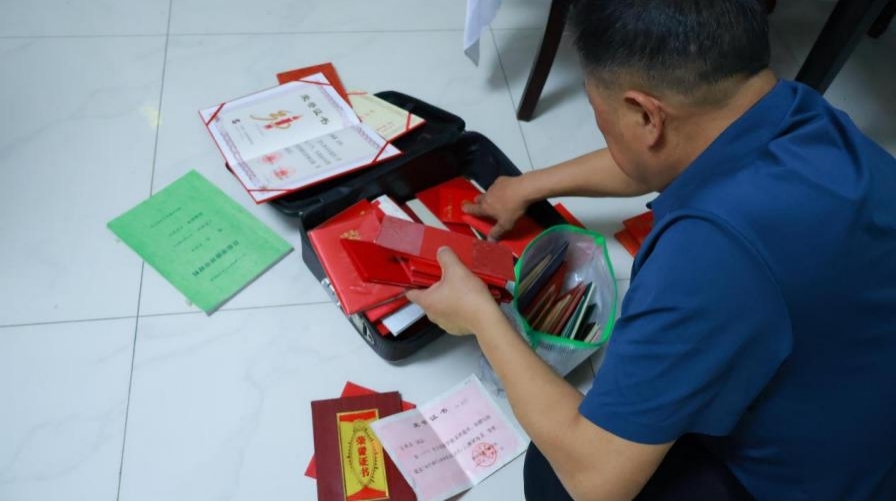 圖為肖調縣老師向實踐團展示獲得過的嘉獎 尹妤伊供圖