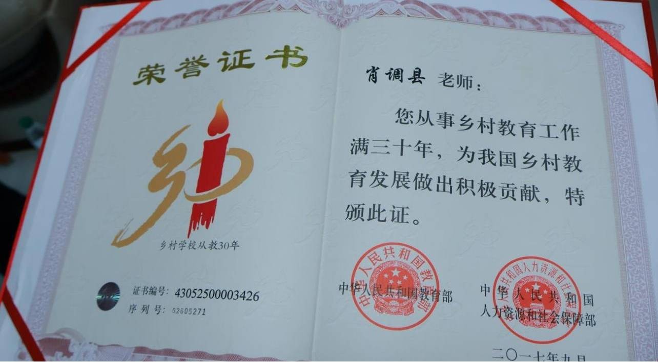 據悉,肖調縣的教育工作生涯始于1982年7月,至2022年12月正式退休,歷時逾四十年。在此期間,他曾在月溪中心小學、歐溪中學、渣坪中學等多所學校擔任教職,歷任教導主任、校長、學區專干等職務,并教授過語文、數學、歷史、生物、美術等多種學科。根據學校需求,他能夠勝任各種教師角色,因此被同事們親切地稱為“萬金油”。