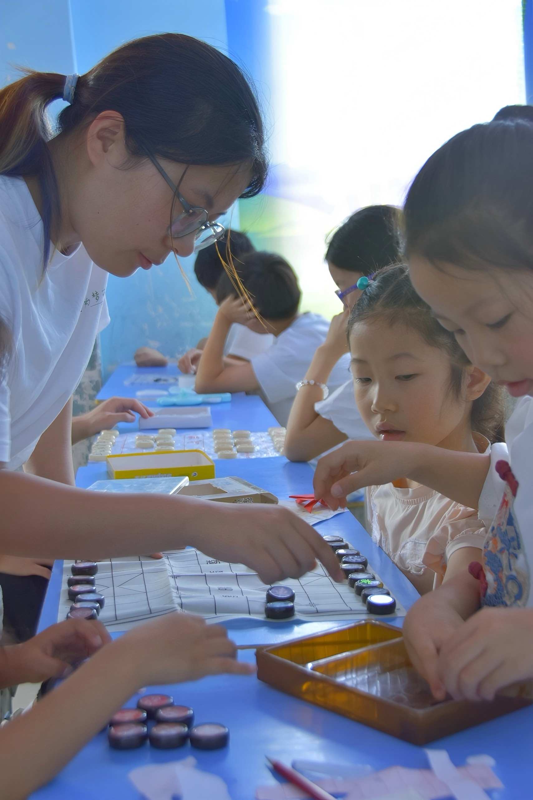 圖為隊員教同學們象棋的基本規(guī)則。 卜祥吉 供圖