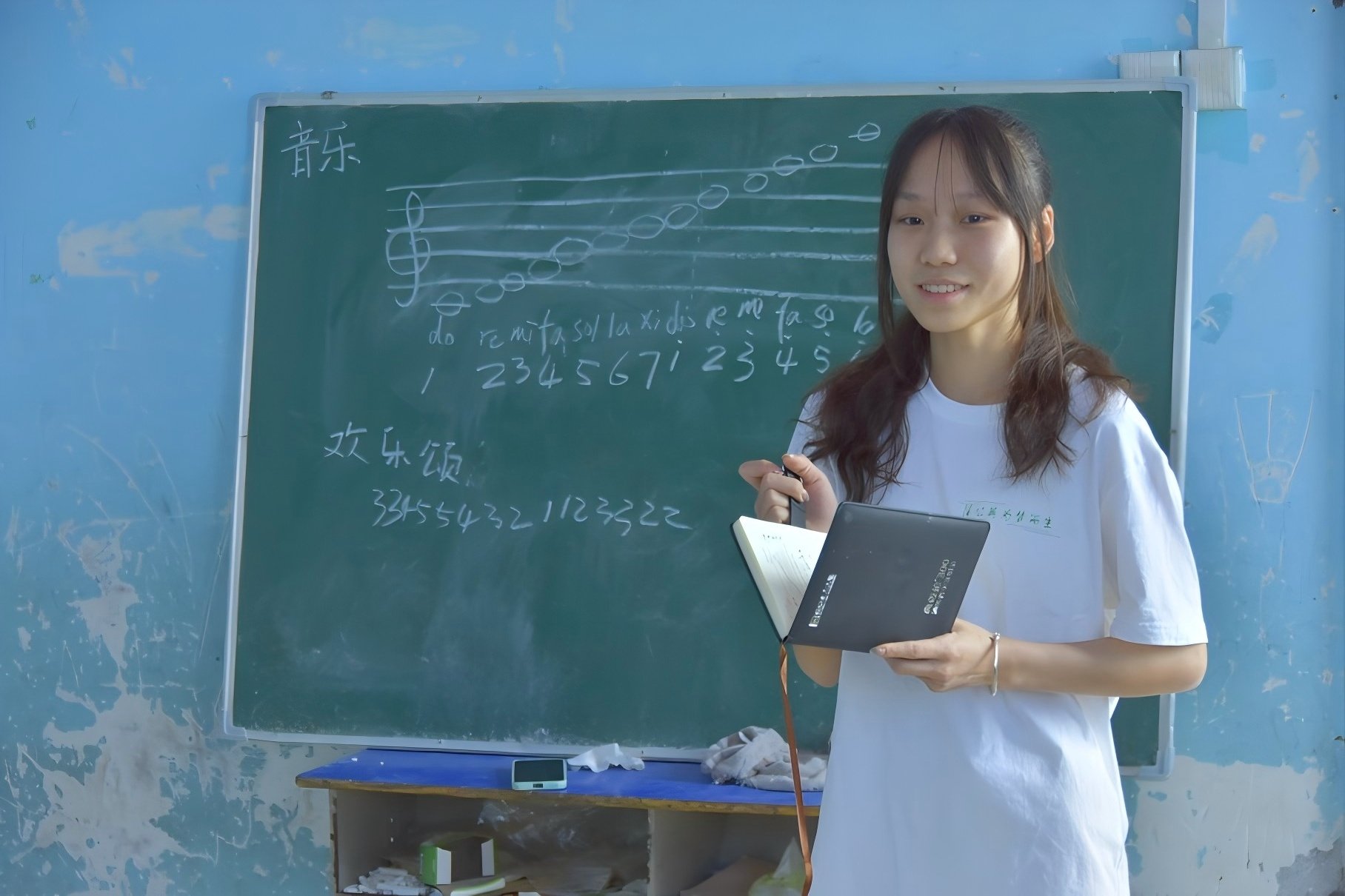 圖為隊員為孩子們上音樂課。 卜祥吉 供圖