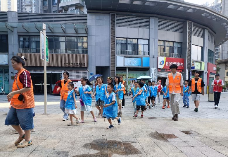 實(shí)踐隊(duì)成員分組行動(dòng),每組負(fù)責(zé)3-5名小朋友,手牽著手護(hù)送孩子們前往江漢關(guān)博物館。途中,隊(duì)員們時(shí)刻提醒孩子們注意交通信號燈、靠人行道行走,用耐心與細(xì)心構(gòu)筑起安全防線。抵達(dá)博物館后,部分隊(duì)員留在館外等候,其余成員返回社區(qū),馬不停蹄地整理繪畫工具,為后續(xù)活動(dòng)做好準(zhǔn)備。