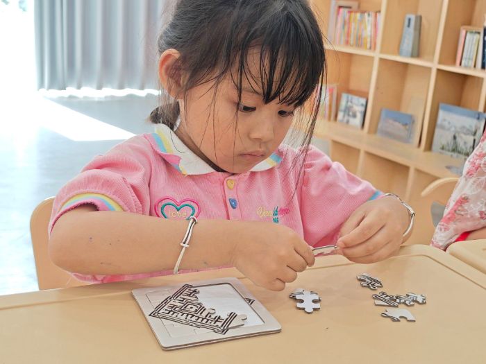 圖為小朋友進(jìn)行小數(shù)民族紋樣拼圖。張娟 供圖