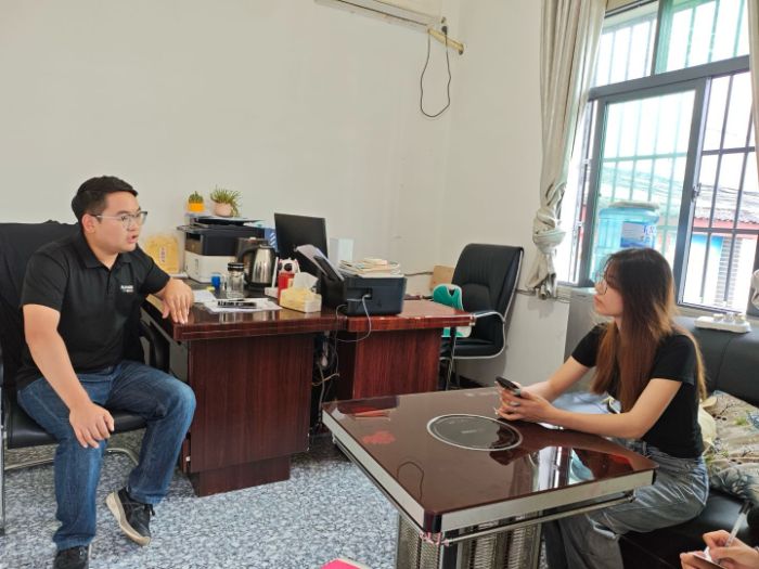 圖:團隊成員采訪花茂村團委負(fù)責(zé)人吳通