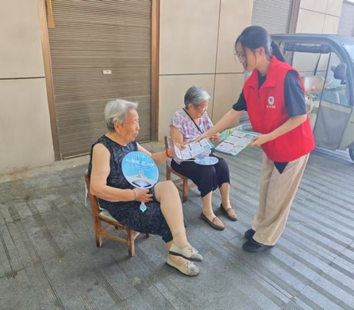 在南陽,隊員們分成兩個小組開展工作。一組同學走進社區(qū),投身環(huán)境整治工作。他們拿起掃帚、簸箕等工具,仔細清掃路面雜物,對每一處衛(wèi)生死角都不放過。在垃圾回收箱周邊,隊員們積極打掃衛(wèi)生,為建設整潔、舒適的社區(qū)環(huán)境做貢獻。