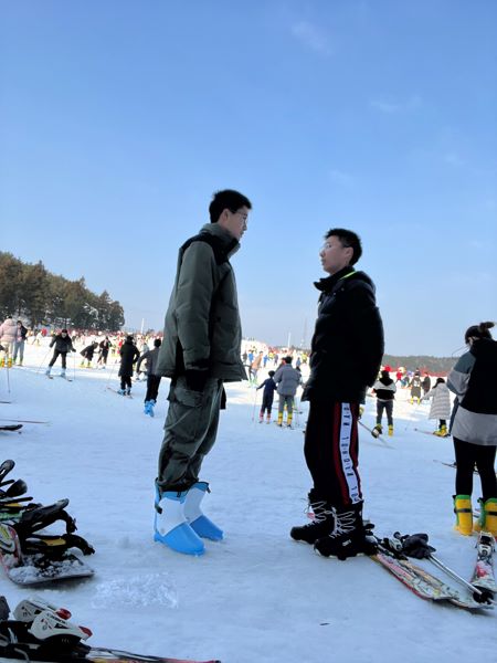 隨后小組成員來到了雪場繼續考察和體驗。雪場里配備了一百多個教練員,提供有償滑雪教學服務。為了自身和他人的安全,進入雪場的大門口有喇叭重復呼吁初學者聘請教練。教練主要負責照顧學員滑行過程中的安全和初級的滑行技巧。在團隊成員與教練的交談中,得知教練大多數來自東北,趁著年前還沒回老家來這里做兼職。教練也透露今年來游玩的游客人數特別多,有很大一部分都是初學者,之前沒有滑雪的經歷,是今年受到冬奧會的影響才來體驗滑雪項目。大部分游客也很樂意請教練來提高自己的滑雪技術。