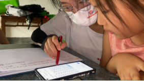 圖為實踐隊員為留守兒童開展線上推普課程。團隊成員 佘采薇 攝