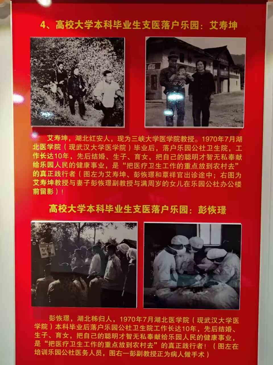 團隊成員還發現,三峽大學醫學與樂園村不解的情緣——原三峽大學醫學院教授艾壽坤與彭恢璟也曾落戶樂園,在這里他們相識相愛,比翼連枝……這些珍貴的照片與錢大春等三峽大學醫學前輩的故事讓團隊成員深深感受到了醫學前輩的無私奉獻精神,更體會到了大愛無疆的醫者情懷。