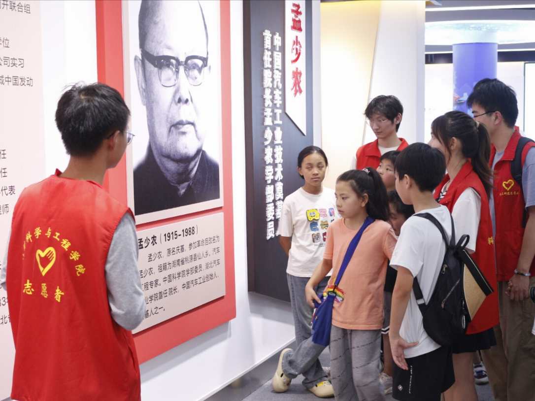 同時,志愿者們也帶著孩子們一起走進湖北汽車工業學院的校史館,開啟了一段探索學校歷史文化的奇妙之旅。講解員用生動有趣的語言,帶著孩子們逐一參觀了校史館的各個展區,讓孩子們感受到了學校歷史的厚重和文化的底蘊,了解了湖北汽車工業學院的歷史和文化,孩子們也明白要珍惜現在的學習機會,努力學習、不斷進步。