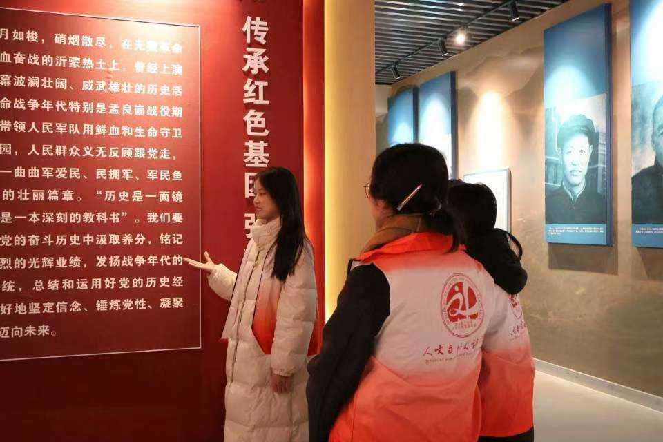 二、孟良崮戰役紀念館:銘記戰役輝煌,傳承勝利基因1月9日,團隊成員共同參觀了孟良崮戰役紀念館。這里曾是解放戰爭時期一場著名戰役的發生地,也是沂蒙精神的重要發源地之一。進入紀念館,大家首先被一幅巨大的戰役形勢圖所吸引。宣講團成員文瀟宇結合形勢圖,詳細講述了孟良崮戰役的全過程。從戰役的發起、發展到勝利,每一個環節都充滿了智慧與勇氣。宣講團成員們認真聆聽,不時提問,對戰役的每一個細節都表現出了濃厚的興趣。